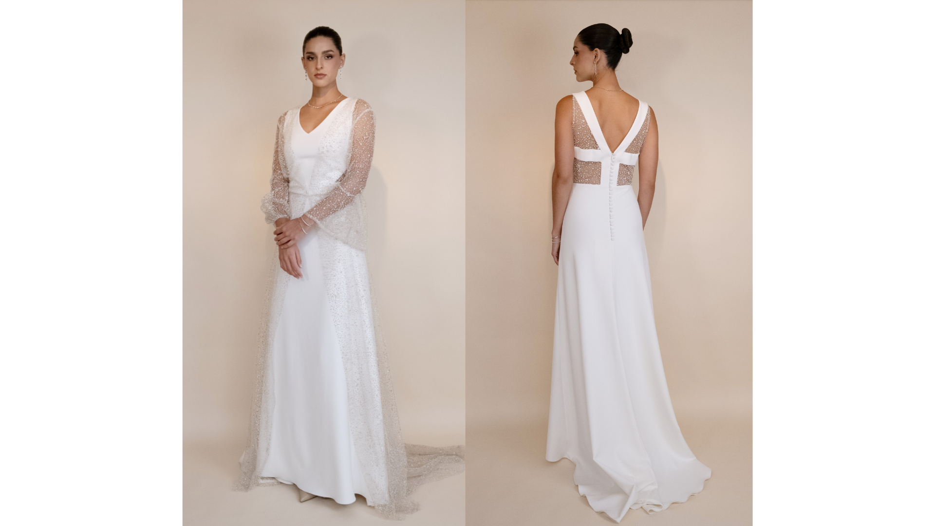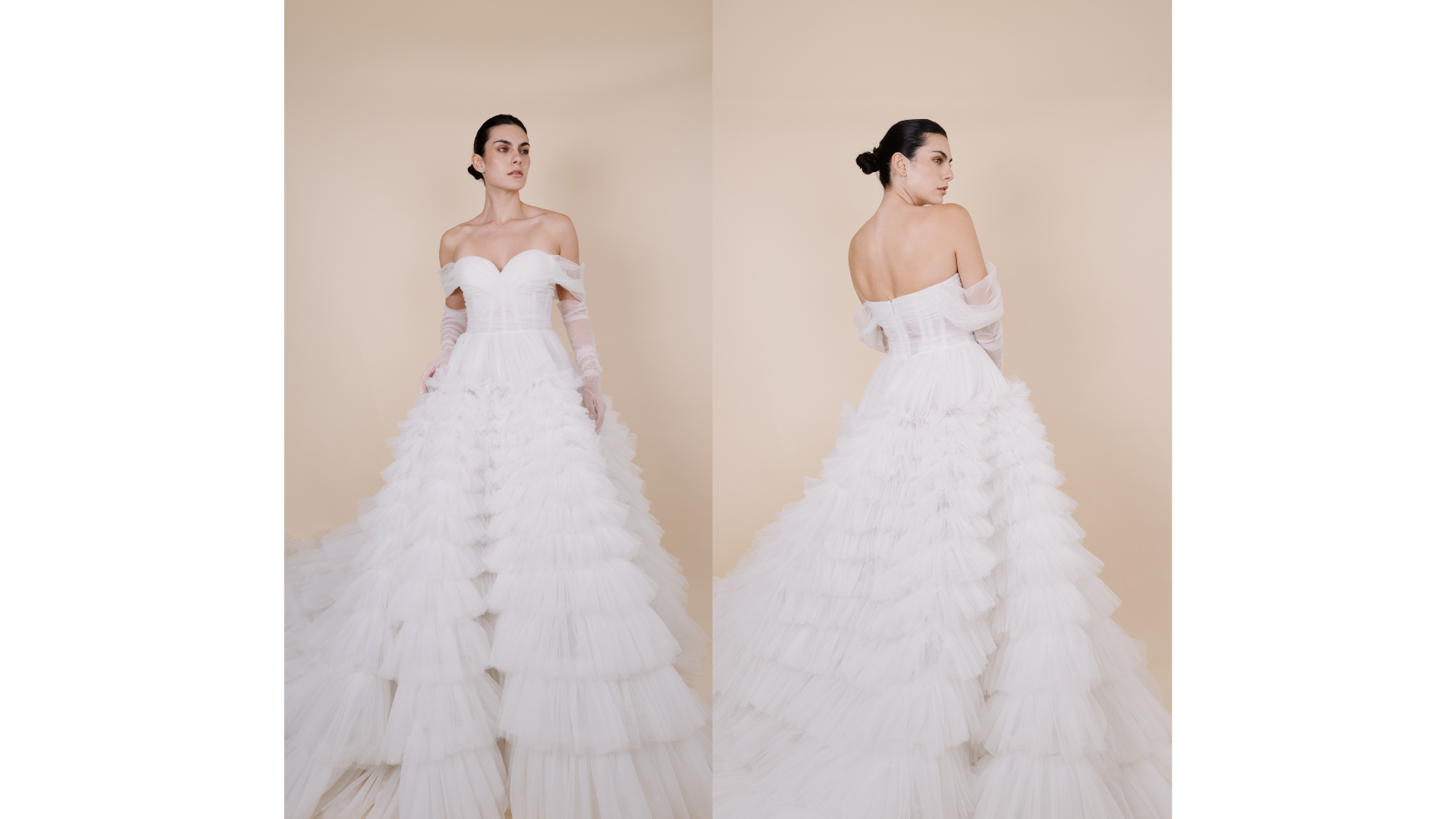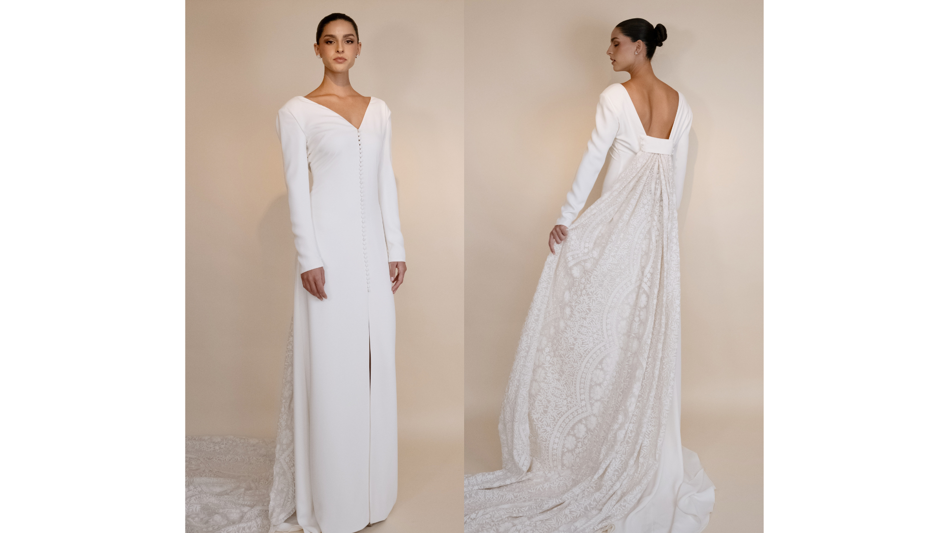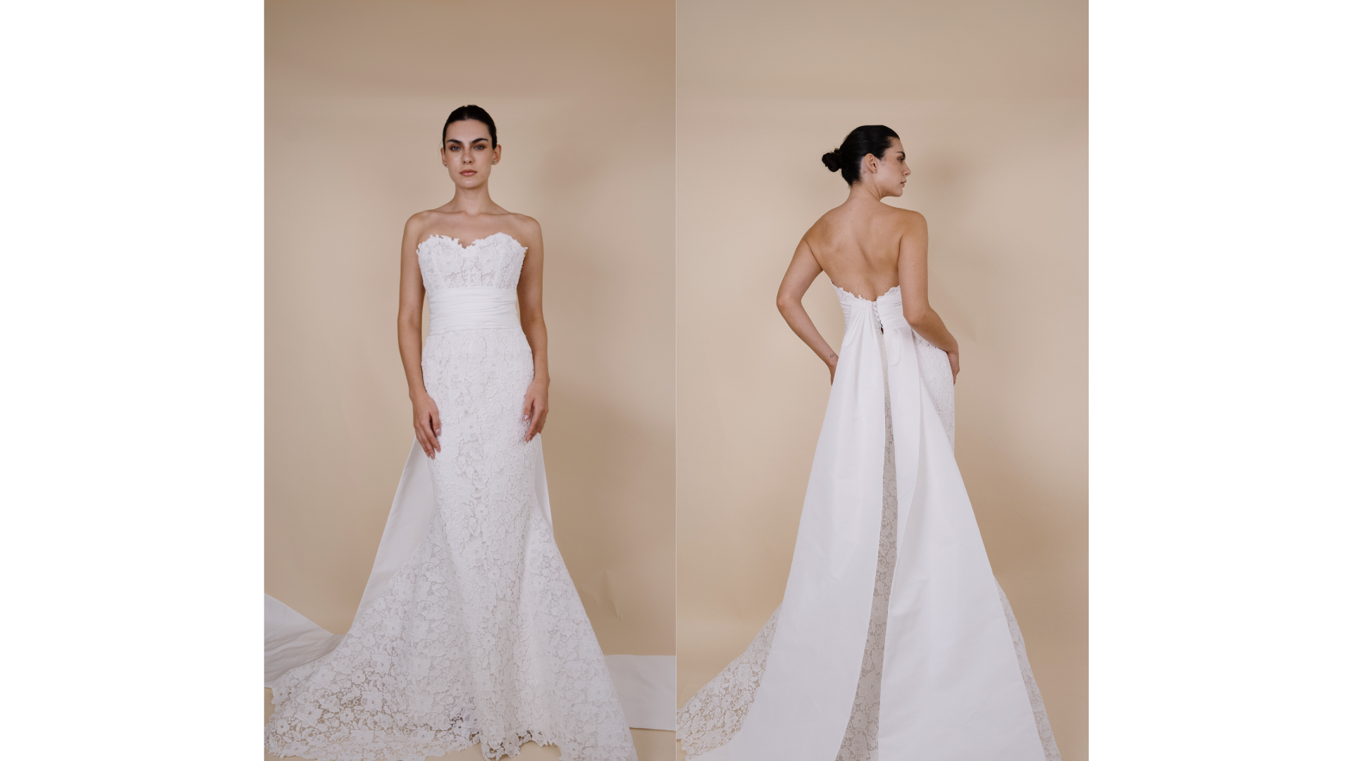 Sus diseños a menudo presentan encajes delicados, bordados y siluetas clásicas con un toque moderno.